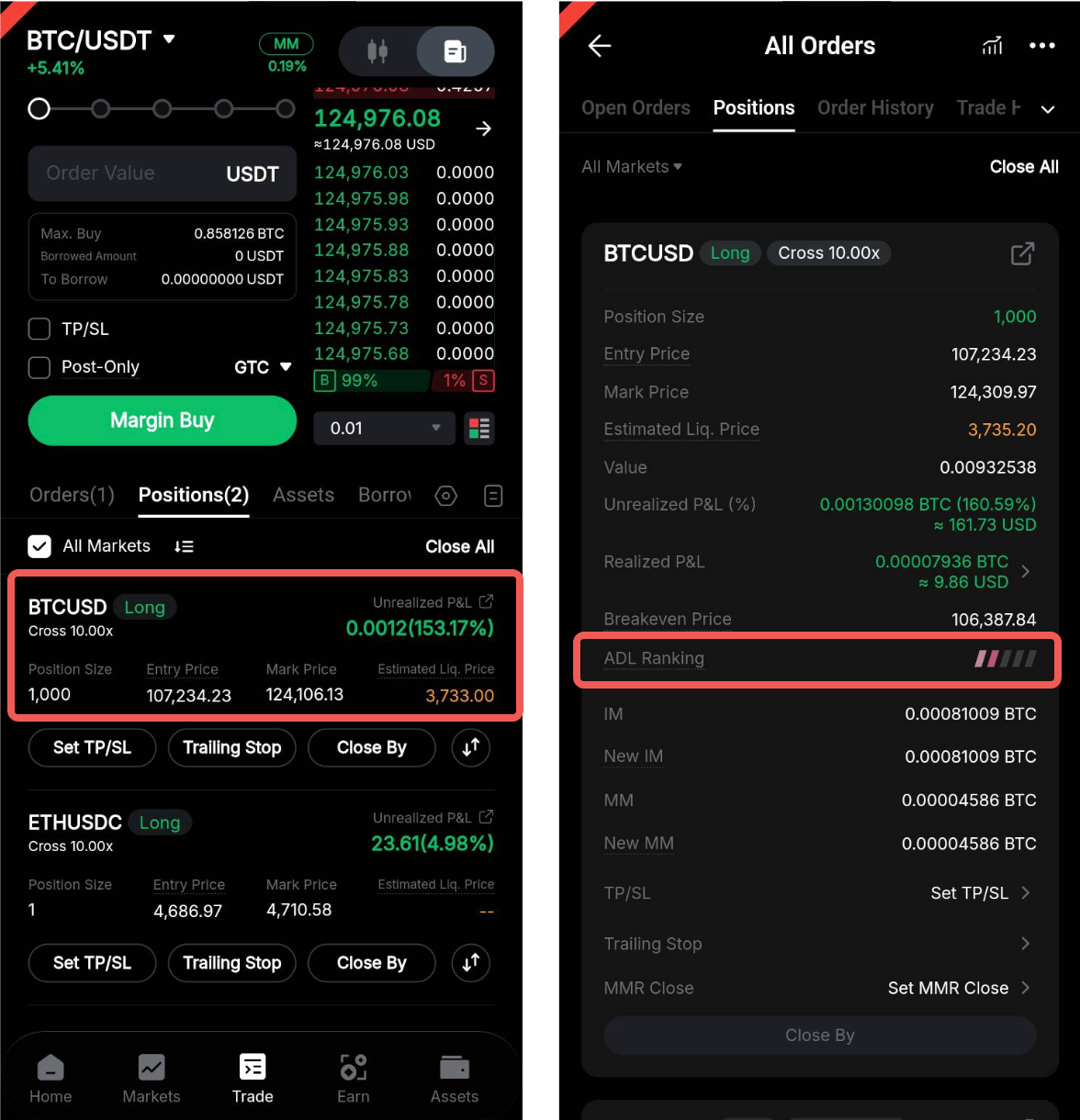 Traders can check the ADL ranking of each position from their Positions tab.