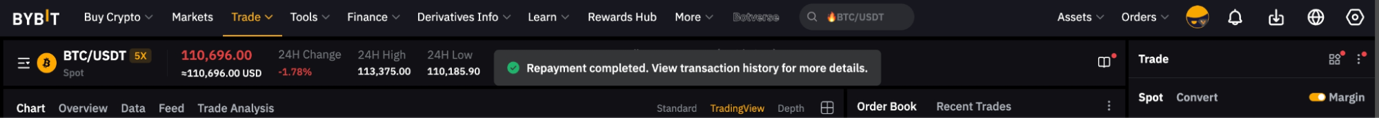 Here’s a step-by-step guide on how to make manual repayments in your Unified Trading Account (UTA)  on Bybit. For more information on how borrowings can occur, please visit here.