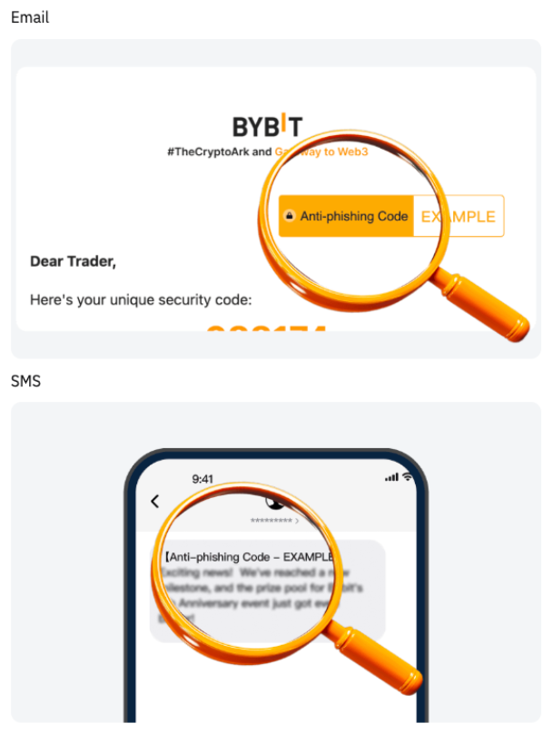 • Verifies the authenticity of emails and SMS messages from Bybit