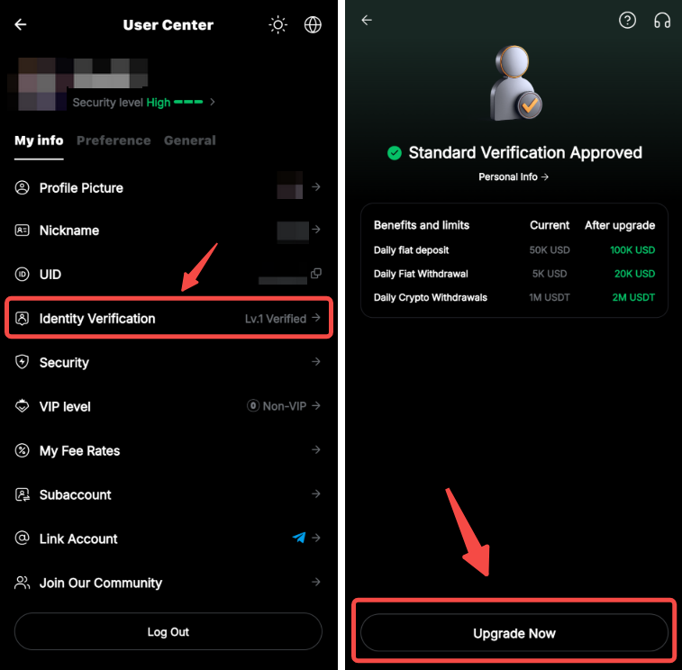 個人の本人確認は3つのレベルに分かれています。Standard、Advanced、Proです。これら3つのレベル間の利益と出金限度額の違いは、異なるKYCレベルの利益にあります。この記事では、標準、上級、プロレベルの本人確認を完了するためのステップバイステップガイドを提供します。