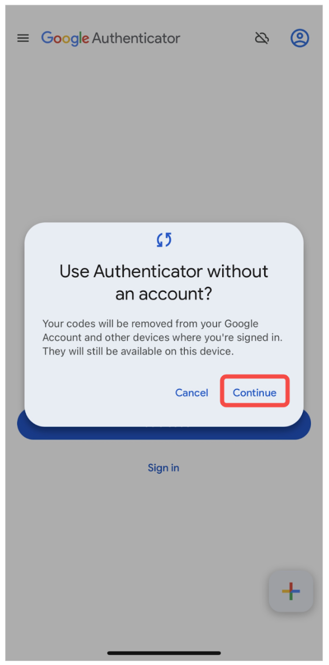 Se você estiver usando o Google Authenticator sem vinculá-lo a uma conta, a sincronização será desativada por padrão. Nesse caso, nenhuma ação adicional é necessária. Seus tokens 2FA já estão armazenados apenas em seu dispositivo.