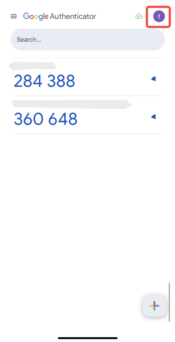 1º passo: Inicie o aplicativo Google Authenticator em seu dispositivo. Toque no ícone do seu perfil localizado no canto superior direito da página do Google Authenticator.