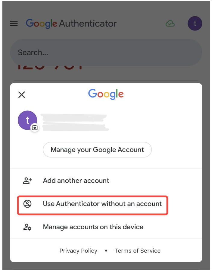 Se você vinculou o Google Authenticator a uma conta e deseja desativar a sincronização, siga estes passos: