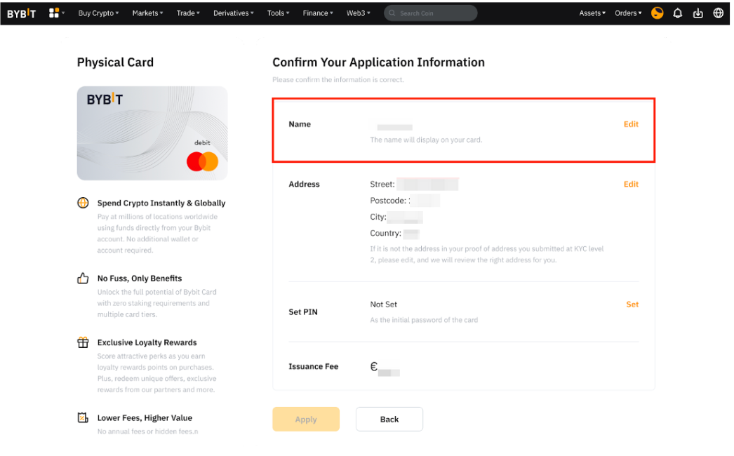 Step 3: Edit your shipping address. The shipping address should be the same as the address submitted for your virtual Bybit Card's Address Verification.
